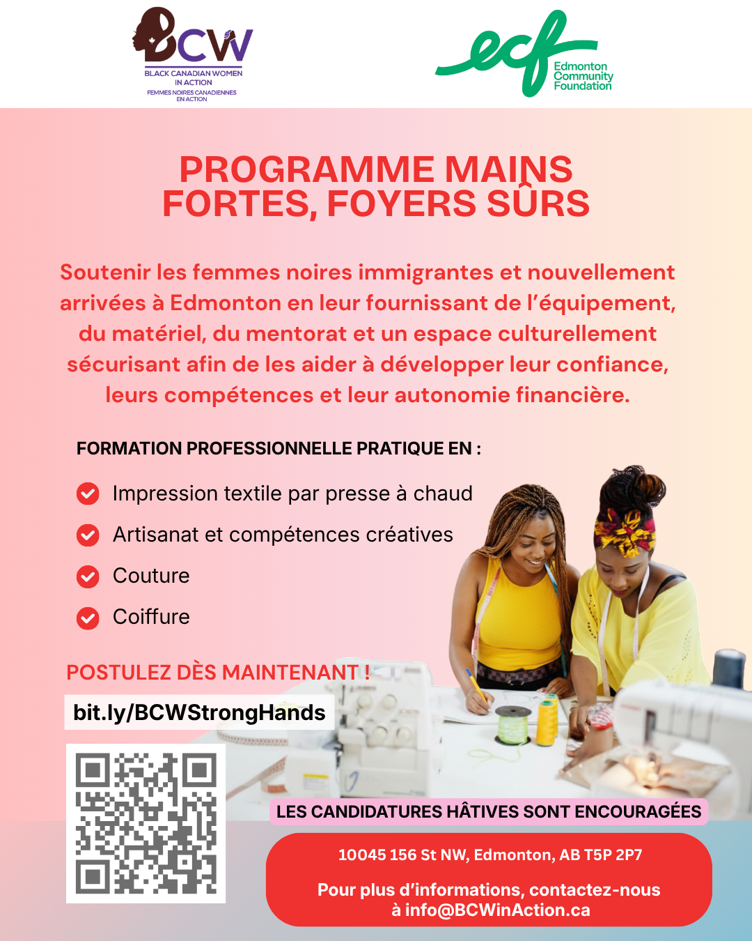 Many women in our community face systemic barriers to employment, including language challenges, lack of Canadian work experience, and limited access to training opportunities. This program responds directly to those gaps by offering: