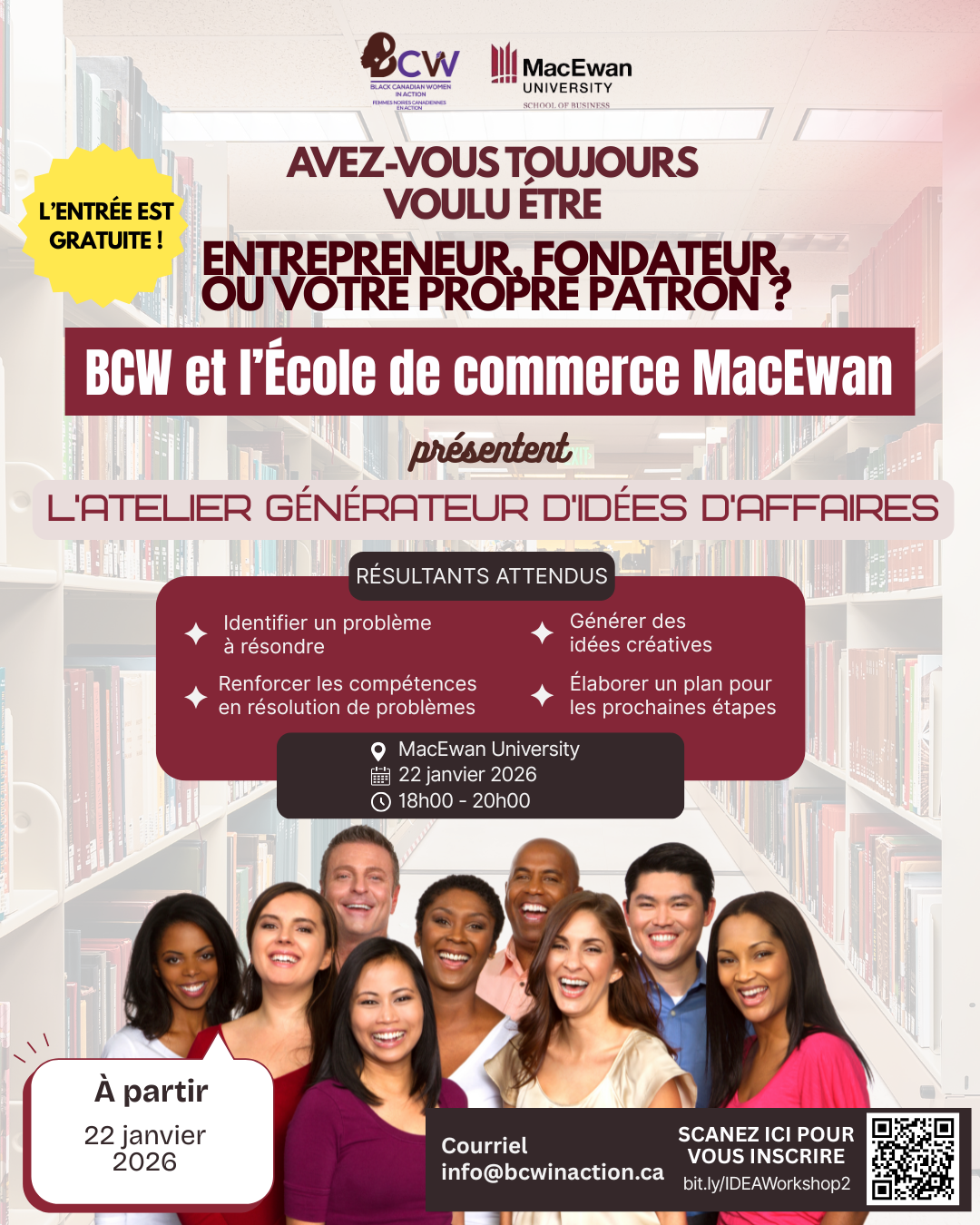 Participez à l’ATELIER GÉNÉRATEUR D’IDÉES présenté par Black Canadian Women in Action (BCW) & MacEwan Business School