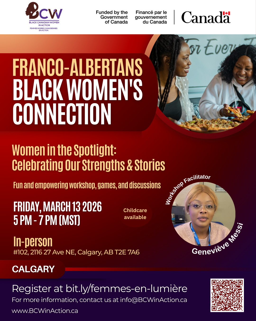 The session will be facilitated by Geneviève Messi, a health professional originally from Cameroon with experience in occupational health nursing and health promotion education. Now working within Alberta’s healthcare system while actively engaged in community initiatives, she is dedicated to supporting mental wellness, integration, and empowerment among immigrant women.