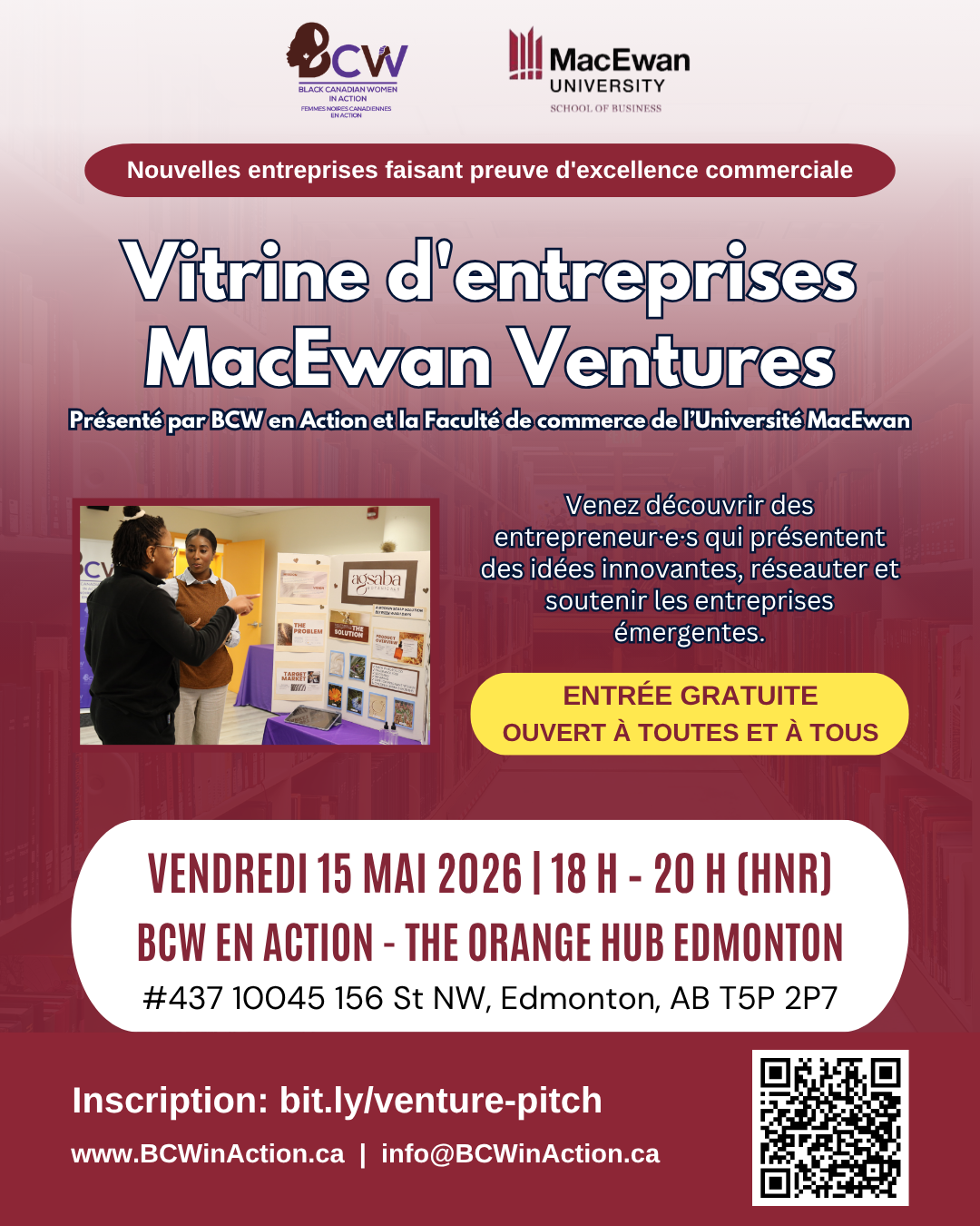 Join us for an inspiring evening as entrepreneurs from the MacEwan Ventures Program take the stage to pitch their business ideas after weeks of hard work, mentorship, and growth.